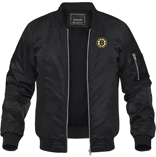 Men's NHL Boston Bruins Lightweight Bomber Jacket Windbreaker Softshell Varsity Jacket
