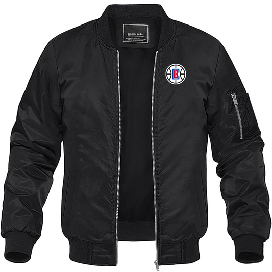 Men's LA Clippers Lightweight Bomber Jacket Windbreaker Softshell Varsity Jacket Coat