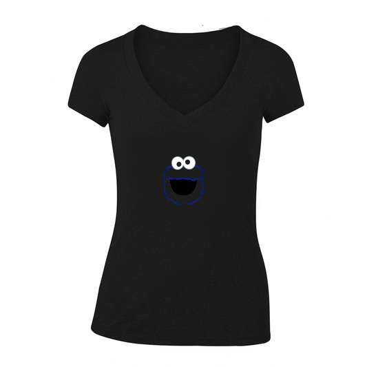 Women's Sesame Street Cookie Monster face V Neck T-Shirt