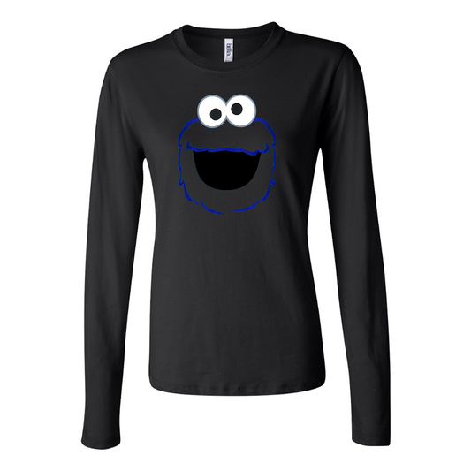 Women's Sesame Street Cookie Monster face Long Sleeve T-Shirt