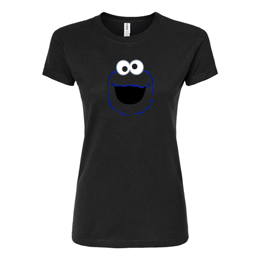 Women's Sesame Street Cookie Monster face Round Neck T-Shirt