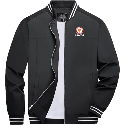 Men's Popeyes Louisiana Kitchen Lightweight Zip-Up Bomber Jacket with Ribbed Collar and Cuffs Versatile Casual Outerwear