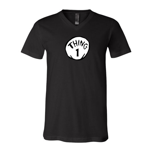 Men's Dr. Suess Thing 1 BELLA CANVAS Jersey V-Neck Tee
