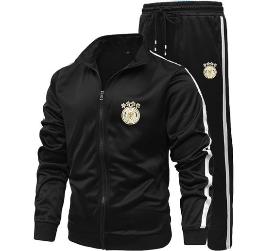 Men's Germany soccer Two-Piece Designer Tracksuit with Bold Striped Accents and Zippered Front Elevated Athletic Wear